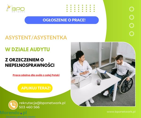 Asystent/ka w dziale audytu z orzeczeniem o niepełnosprawności