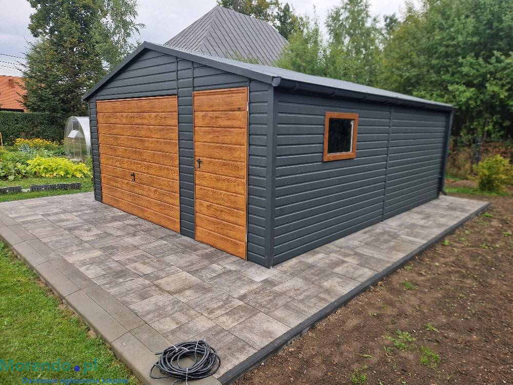 Oferuję garaże blaszane w kolorach drewnopodobnych - eleganckie, trwałe i idealne do każdego domu czy firmy.